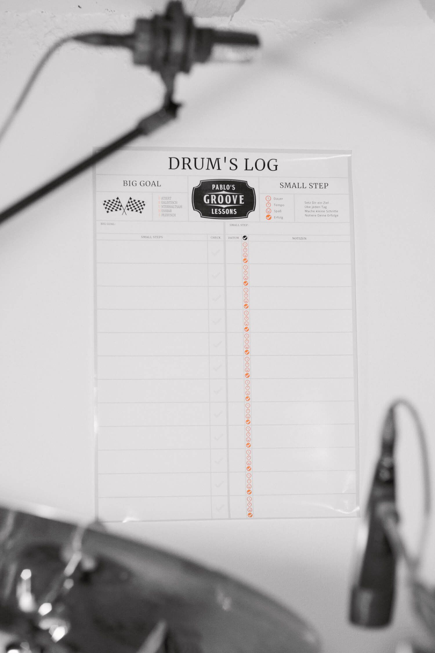 Not only do you get a poster, you also get a guide on how to practice effectively and in a structured way. With the help of this guide you will be able to reach your goals faster and become a better drummer.